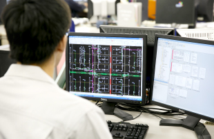 ホーセックでは、京都エリア最大級の工場内で配管・ポンプユニットの製作とダクト製作の生産体制を一体化。各セクションの技術者たちが、ともにその能力を駆使し、時に作業を補い合う、という“フレキシブル体制”を確立し、短納期対応、生産能力向上を実現させています。