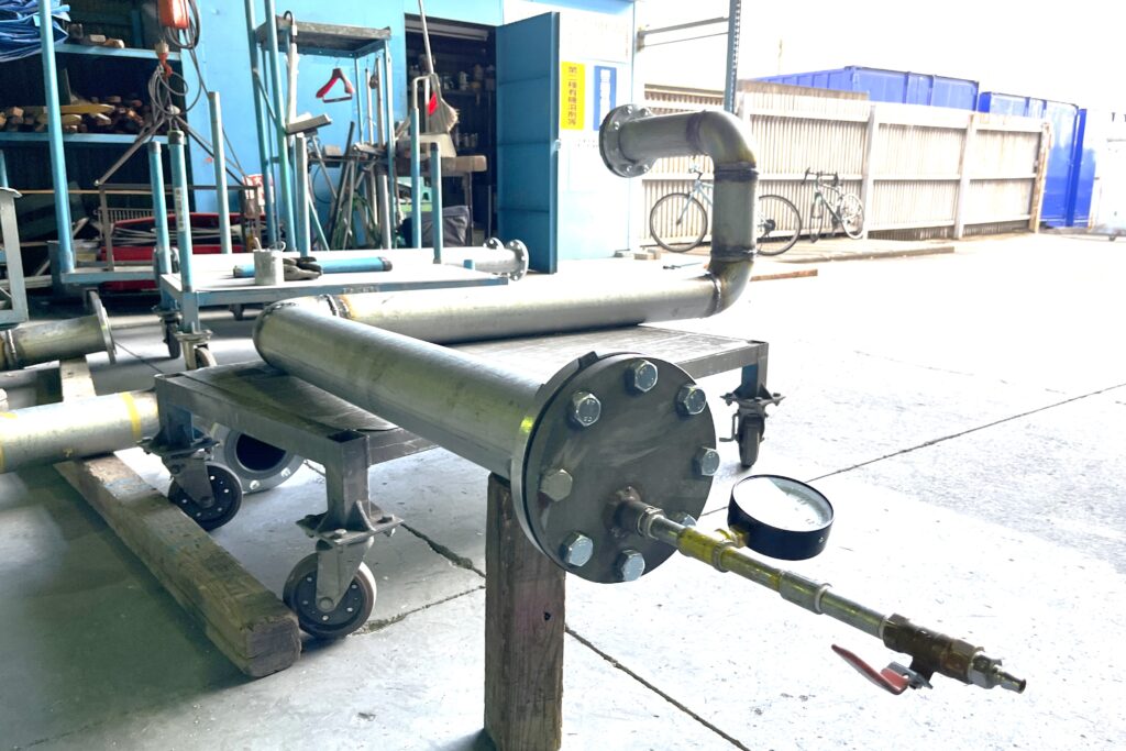こんにちは、てつまどです。 今回は、熱源工事で使用する配管を工場で事前組立している様子と、あわせて行っている耐圧試験についてご紹介します。 ■工場で事前に組立 写真の配管は、現場で使用する熱源 …